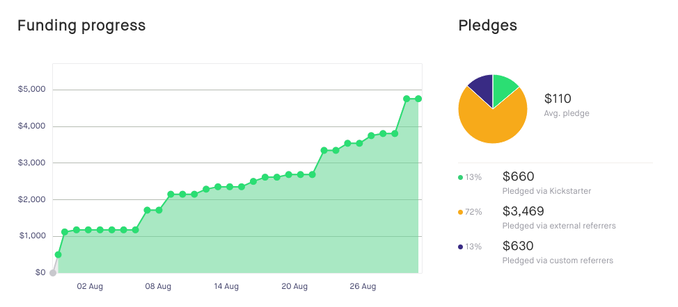 I began with a goal of $500 in order to help subsidize the cover. I chose this number because I felt like it accomplished the goal I wanted, was appropriate to what I had guessed my audience size to be, and allowed me to set some small stretch goals (up to $2,000) that I thought folks would enjoy and might be attainable, but which wouldn’t be missed too much if they weren’t reached. My concerns with the campaign were that it would fall flat due to my relatively limited reach and what I estimated was a fairly small audience.